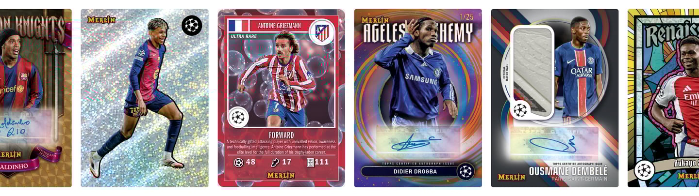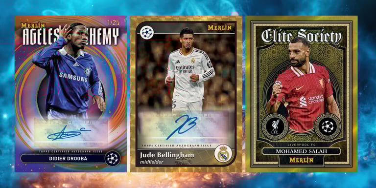 The latest edition of Topps UCC Merlin for the 2024/25 season promises to be a must-watch release for soccer card collectors. With a blend of rookies, legends, and high-end autographs, Merlin continues to deliver its signature “magical” aesthetic — this time with new insert sets and exciting chase elements.